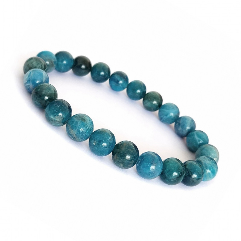 APATYT - bransoletka wykonana z naturalnych koralików apatytu to wyjątkowy dodatek, który zachwyca intensywną, niebieską barwą - od turkusowych odcieni po głęboki morski błękit. Kamień ten przyciąga uwagę swoją świeżością i energią, kojarzoną z inspiracją oraz swobodą wyrażania siebie. Apatyt uznawany jest za kamień inspiracji i komunikacji, który wspiera kreatywność, motywację oraz jasne wyrażanie siebie. Pomaga w koncentracji i sprzyja rozwojowi osobistemu: