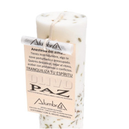 Świeca wykonana jest z wosku roślinnego i posiada knot z 100% naturalnej bawełny. Jest ręcznie wytwarzana w Hiszpanii, w duchu odpowiedzialności za środowisko. W zestawie znajduje się także prosta instrukcja rytuału oraz modlitwa/intencja, którą możesz wypowiedzieć podczas zapalania płomienia, aby wzmocnić swoje intencje związane z pokojem, zgodą i harmonią.