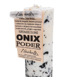 Onyks jest kamieniem mocy, ochrony i ugruntowania. Wspiera przy stawianiu granic, dodaje odwagi w wymagających sytuacjach i pomaga zachować zimną krew w obliczu wyzwań. Energia onyksu sprzyja wewnętrznemu panowaniu nad sobą i swoim życiem, a płomień świecy wzmacnia proces odzyskiwania siły i stabilności – na poziomie emocjonalnym, mentalnym i energetycznym.