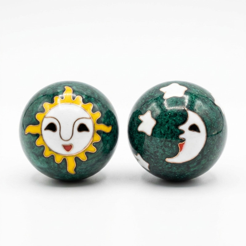 Kule do masażu / kule zdrowia ZIELONE z motywem SUN & MOON